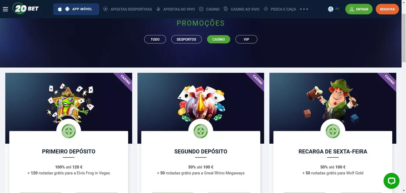 O 20 Bet tem uma lista enorme de promoções disponíveis em Portugal, então vale a pena conferir a secção de ofertas no sítio.