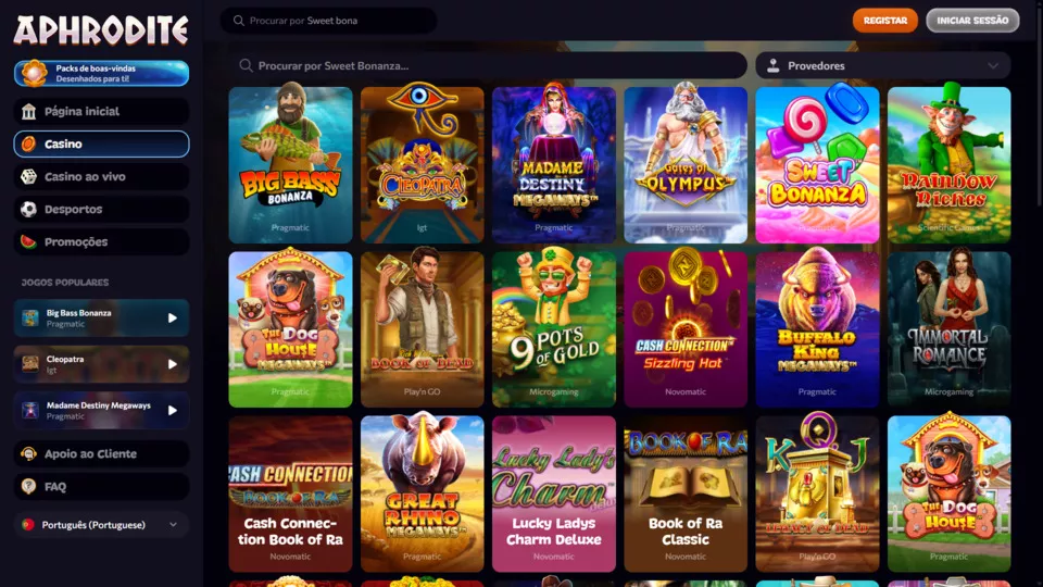 Com mais de 40 fornecedores de software de jogos, o Casino Afrodite apresenta uma abrangente coleção de jogos do Casino Afrodite online, entre slots machines, jogos de mesa, jackpot e jogos com dealer ao vivo. Líderes de mercado como a Pragmatic Play, a Novomatic, a Play ‘n Go e a Hacksaw alimentam o catálogo de jogos, oferecendo variedade, qualidade e justiça.