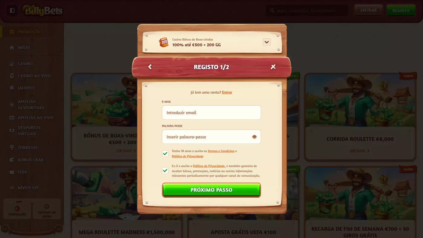 Para os apostadores em Portugal que desejam começar a jogar no Billy Bets Casino, aqui está um guia passo a passo sobre como se registar: