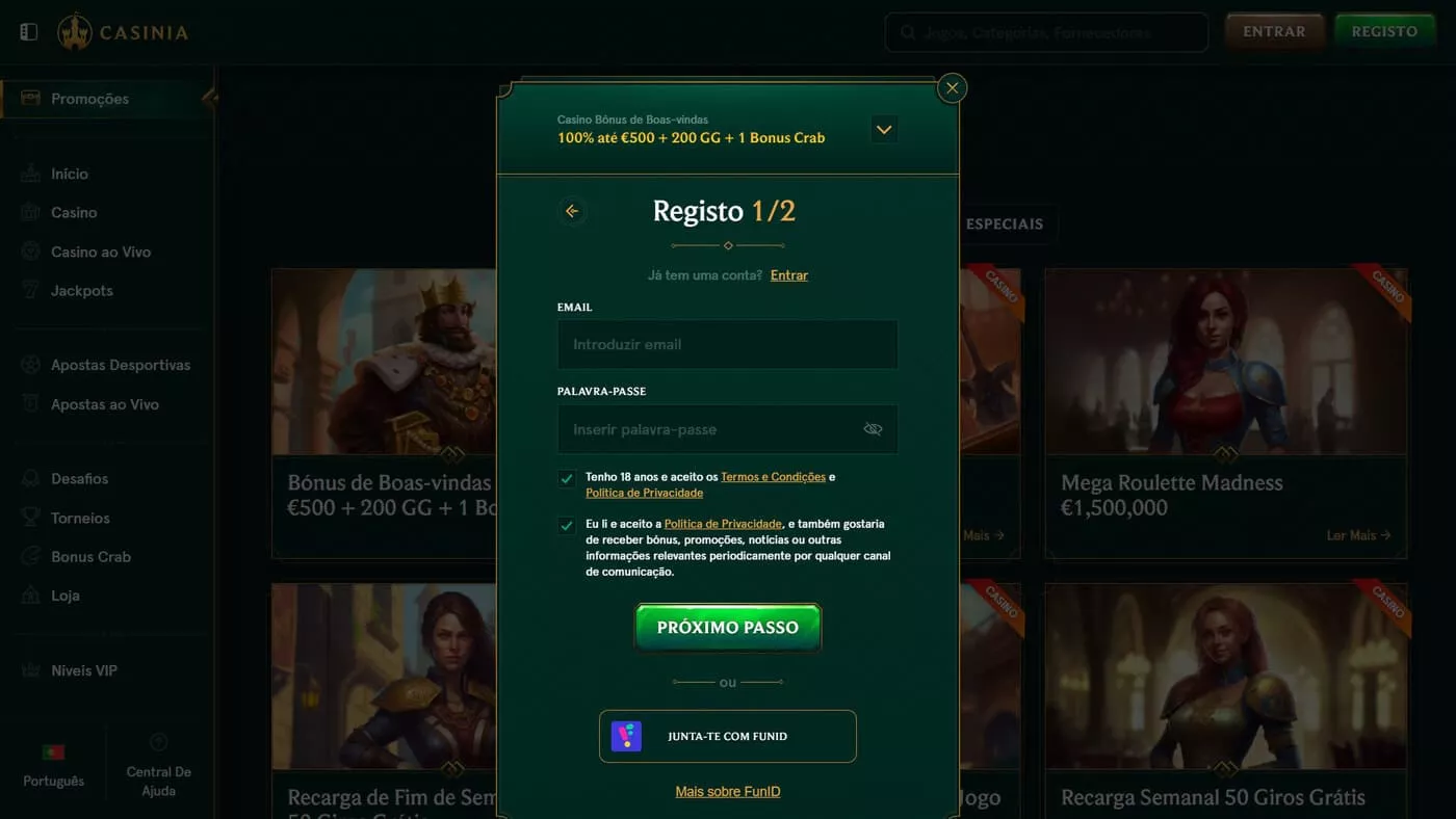 O Casinia Casino oferece uma variedade de promoções exclusivas Portugal com bónus e promoções exclusivos para jogadores portugueses. Aqui, exploramos os tipos de bónus disponíveis, como bónus de boas-vindas, bónus de recarga e cashback, detalhando os requisitos de elegibilidade e como reivindicar cada promoção.
