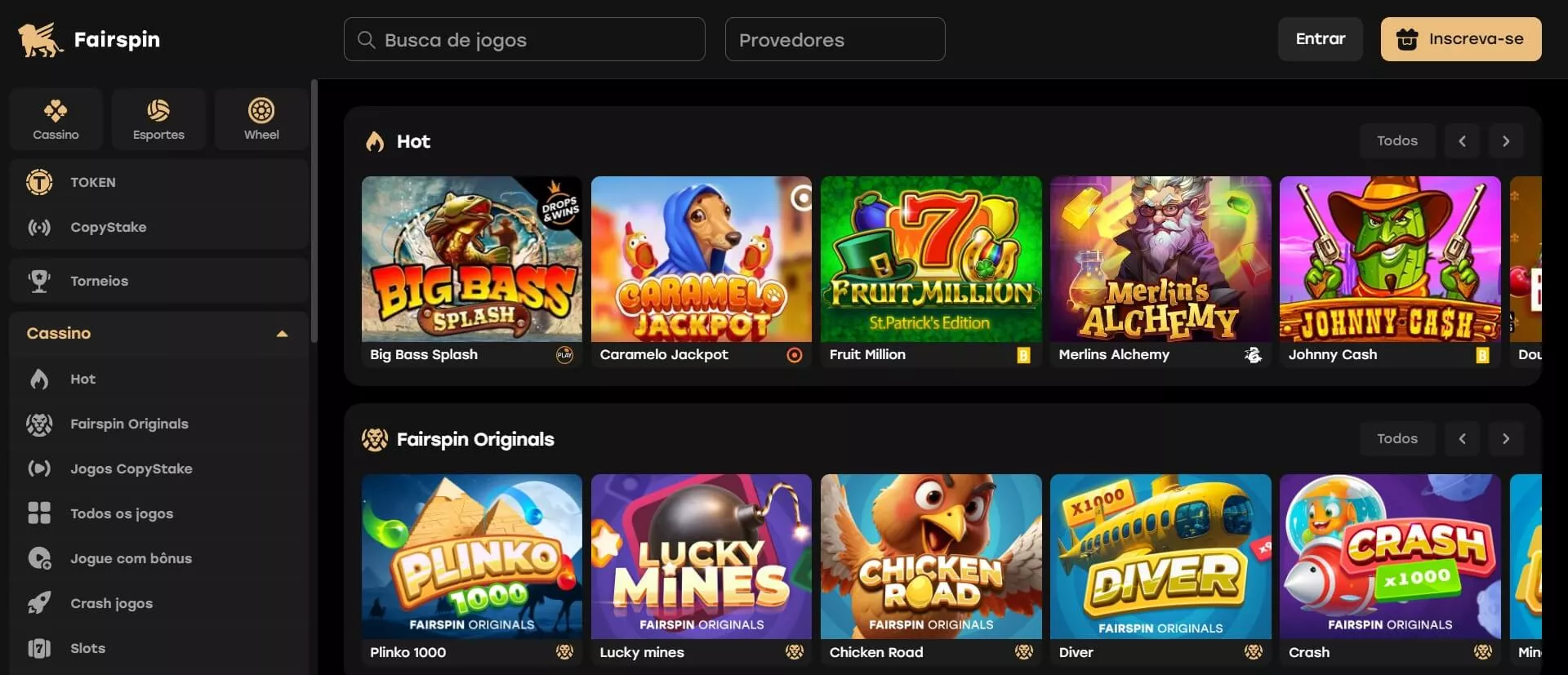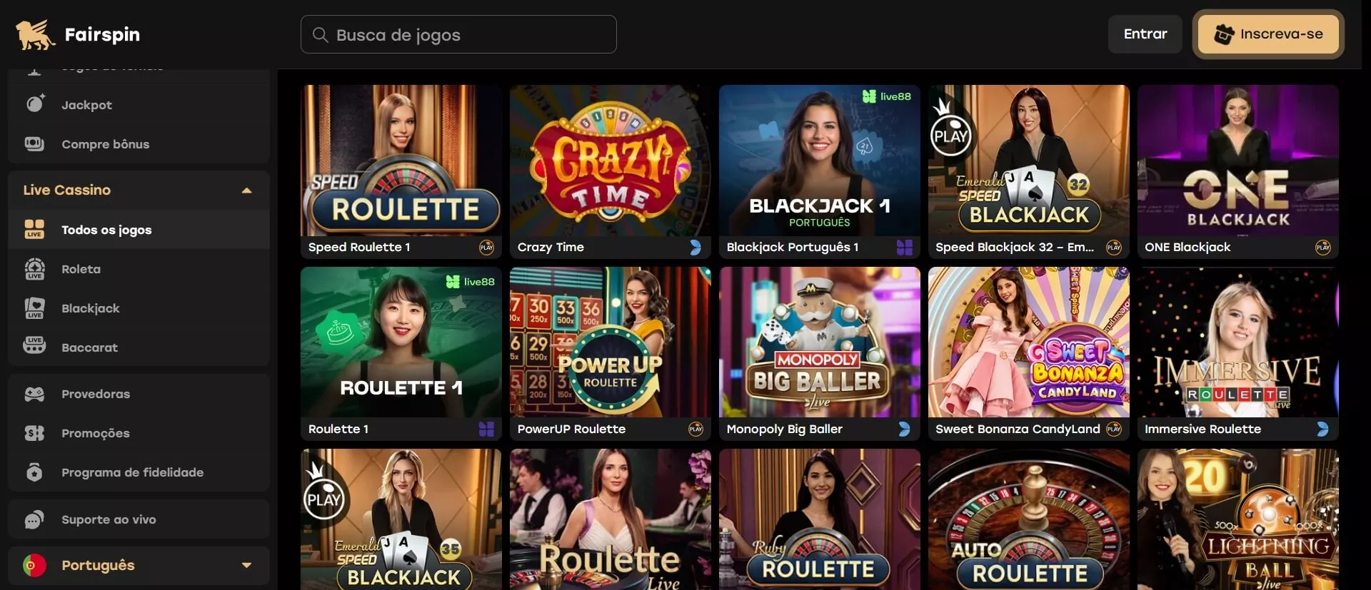 O Fairspin apresenta um vasto leque de jogos de azar licenciados para ganhar no cassino online. A oferta passa pelas clássicas slots machines, os tradicionais jogos de mesa e os novos jogos de casino, incluindo os programas de TV e casino ao vivo.