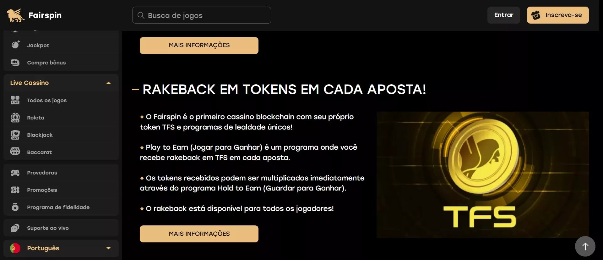 Com o seu próprio ‘token’ TFS, o Fairspin promove um rakeback em cada aposta, disponível para todos os jogadores. Este Fairspin casino bonus traduz-se em dois programas distintos: