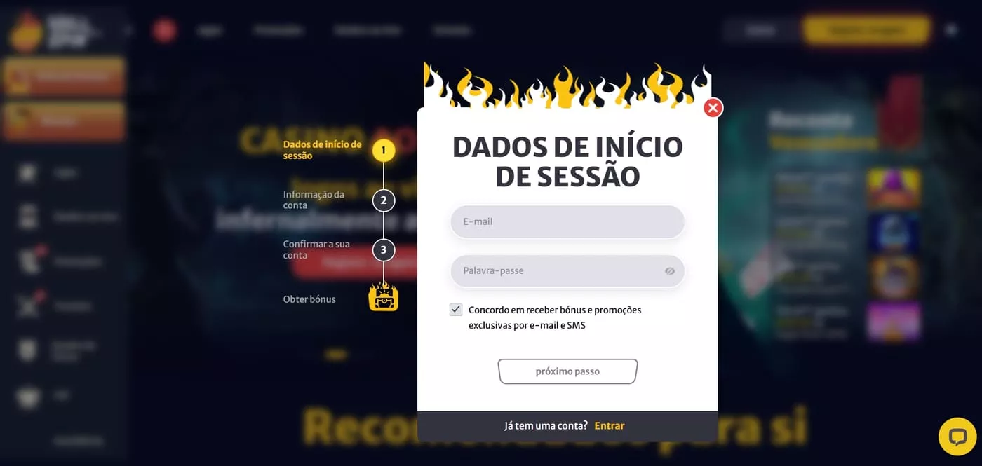 Para começar a jogar no Hell Spin, o jogador deve proceder conforme se indica abaixo: