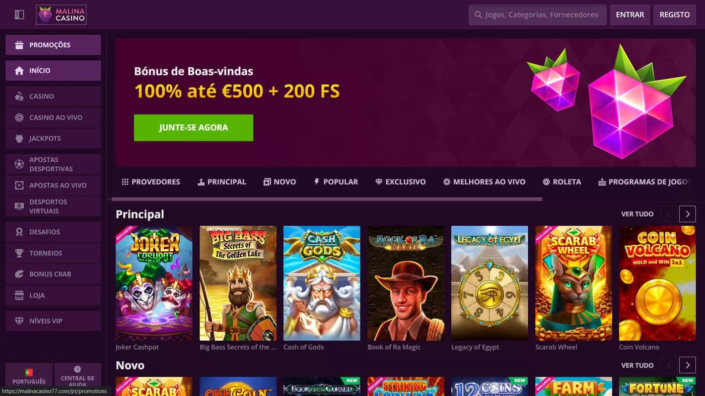 Sim, existe um bónus de boas-vindas para os novos jogadores portugueses no casino malina. O novo cliente pode receber um bónus de 100% do valor depositado, até 500 €, aos quais acrescenta 200 rodadas grátis.