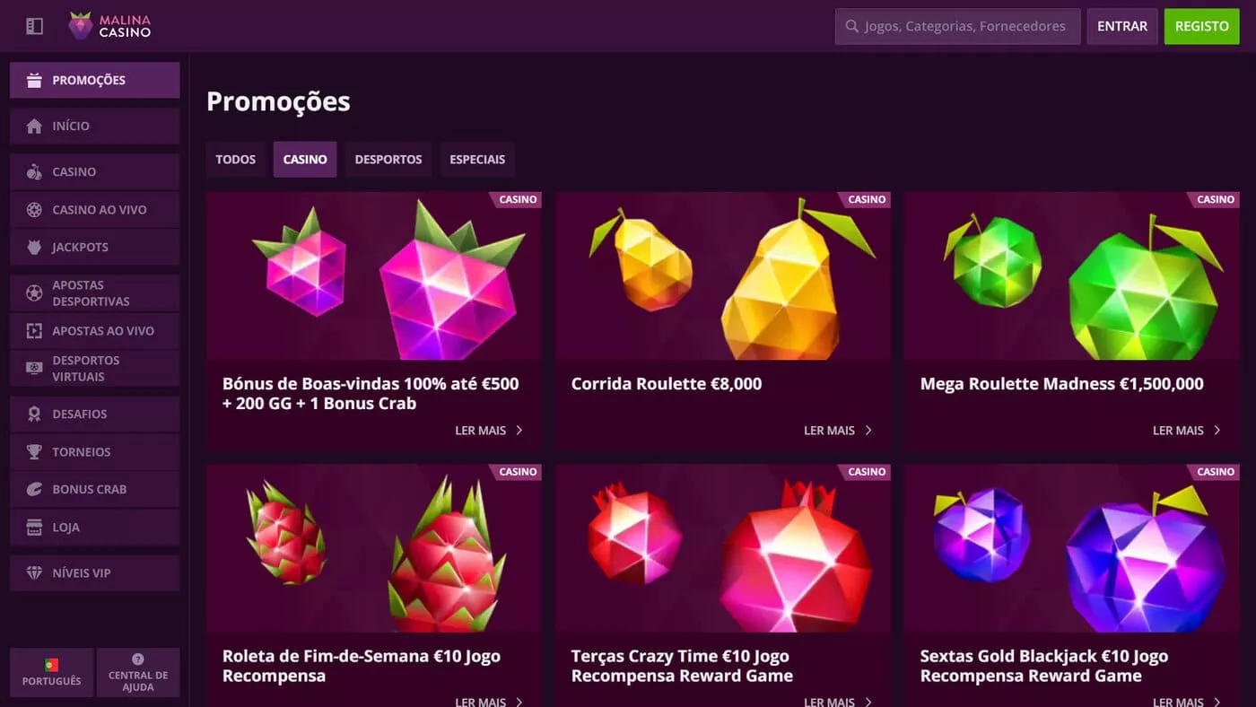 A variedade de ofertas e bónus do Malina Casino é incontestável, com campanhas bastante atrativas, que permitem aos jogadores portugueses estender as suas sessões de jogo e potenciar as suas experiências, com promoções exclusivas Portugal.
