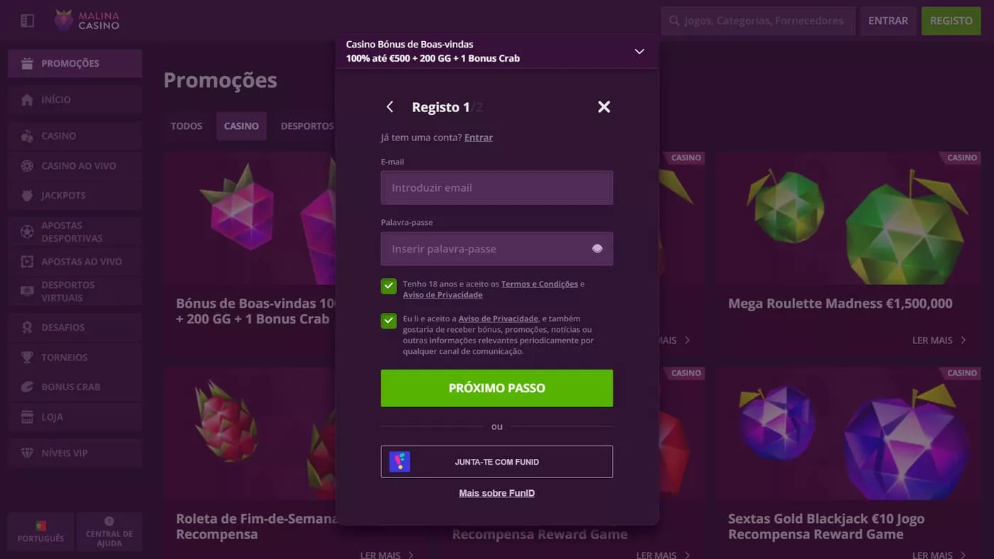 Os bónus para jogadores portugueses no Malina Casino