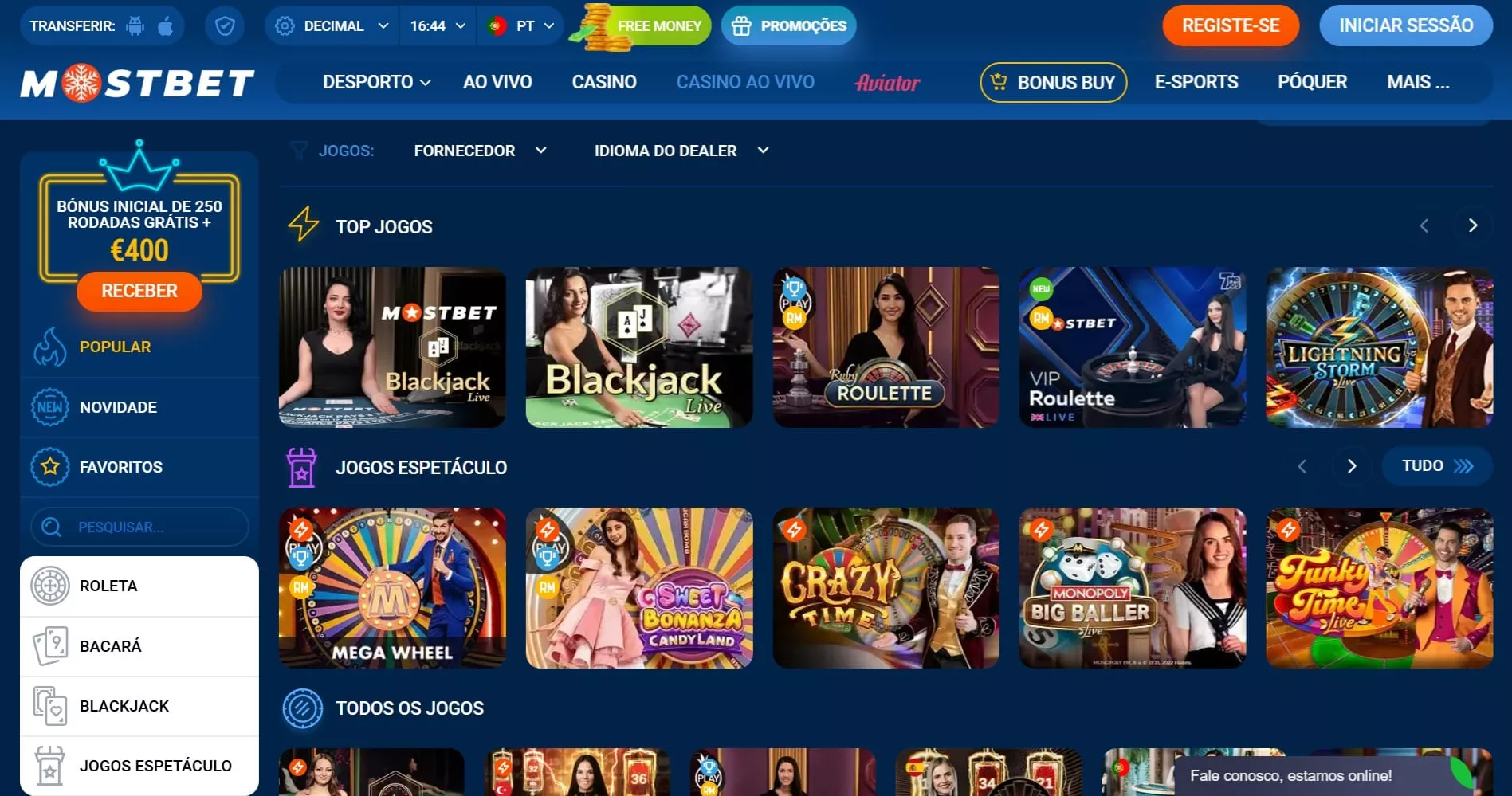 O casino ao vivo da Mostbet PT possui uma área dedicada, facilmente identificada no menu superior. Ao selecionar esta opção, o jogador pode visualizar os tipos de jogos disponíveis na coluna lateral esquerda. No centro da página, os jogos com dealer ao vivo estão organizados em categorias para facilitar a navegação.