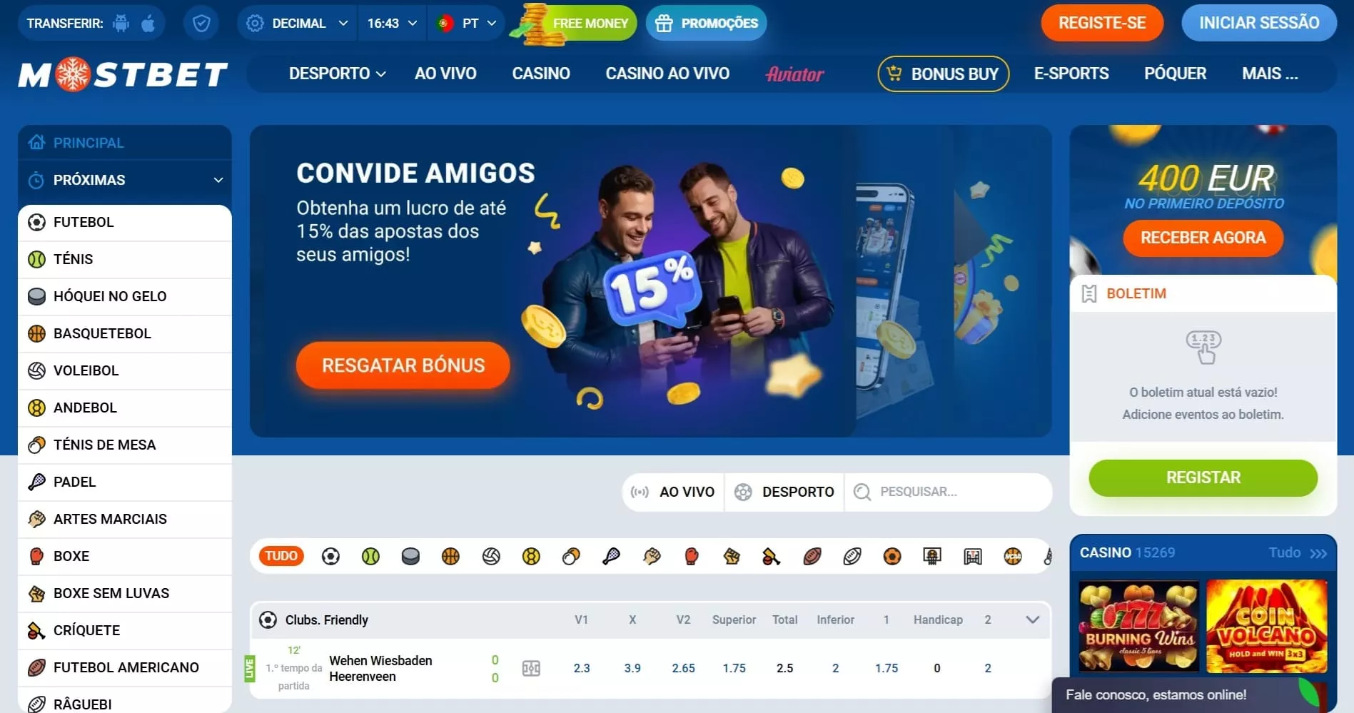 Sim, o apoio ao cliente Mostbet está disponível em portugueês. Para além da área de perguntas frequentes (em português), o jogador poderá utilizar o chat, o e-mail e o telegram, sempre em português, para entrar em contacto com o serviço de apoio ao cliente.