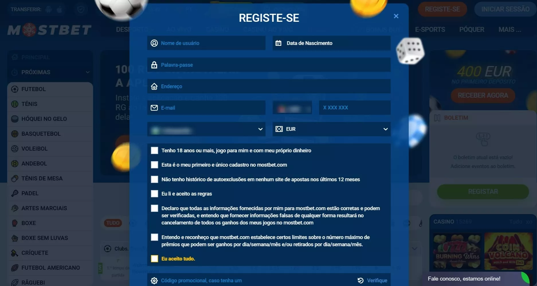Fornecemos instruções claras e detalhadas para um registo rápido, permitindo que comece a jogar no Mostbet casino sem demora: