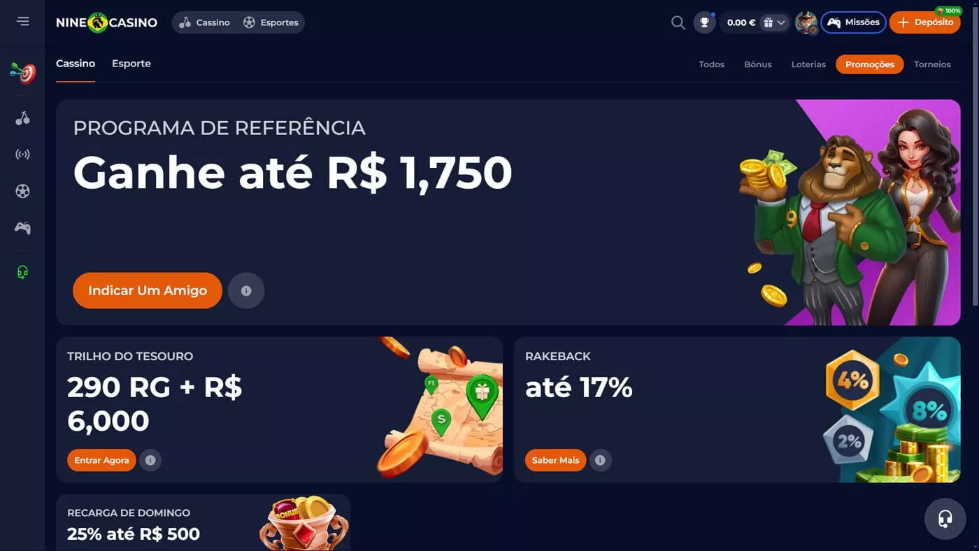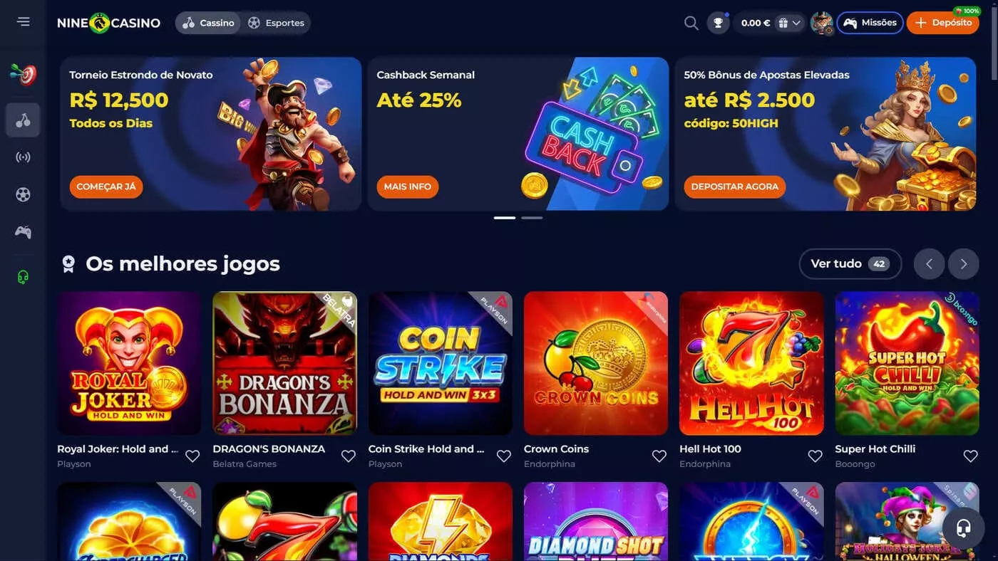 Para atrair novos jogadores, o Nine Casino oferece um pacote de boas-vindas generoso, que inclui bónus de depósitos. Além disso, os jogadores podem desfrutar de bónus de recarga semanal e cashback, criando oportunidades contínuas de maximizar os seus ganhos e prolongar a experiência de jogo.