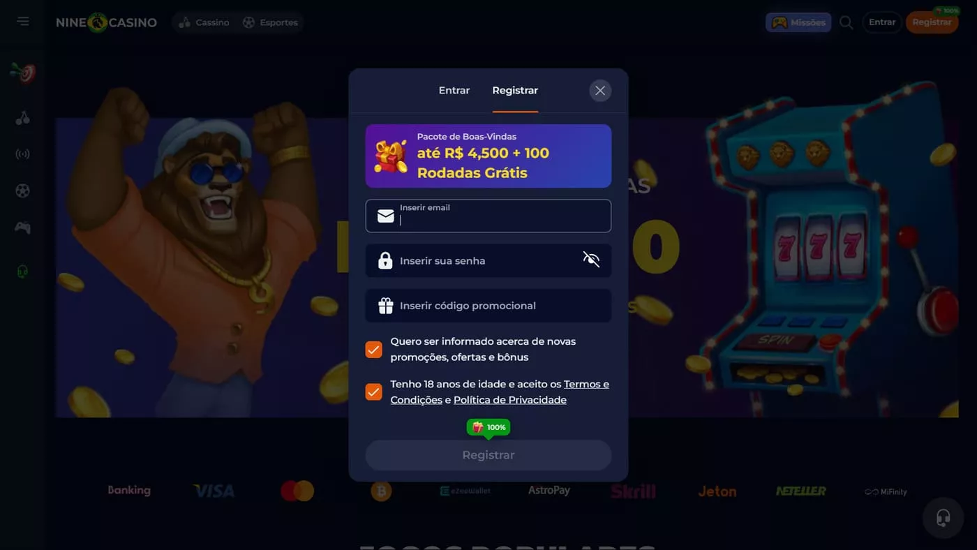 Jogar no Nine Casino é muito simples! Siga estes passos: