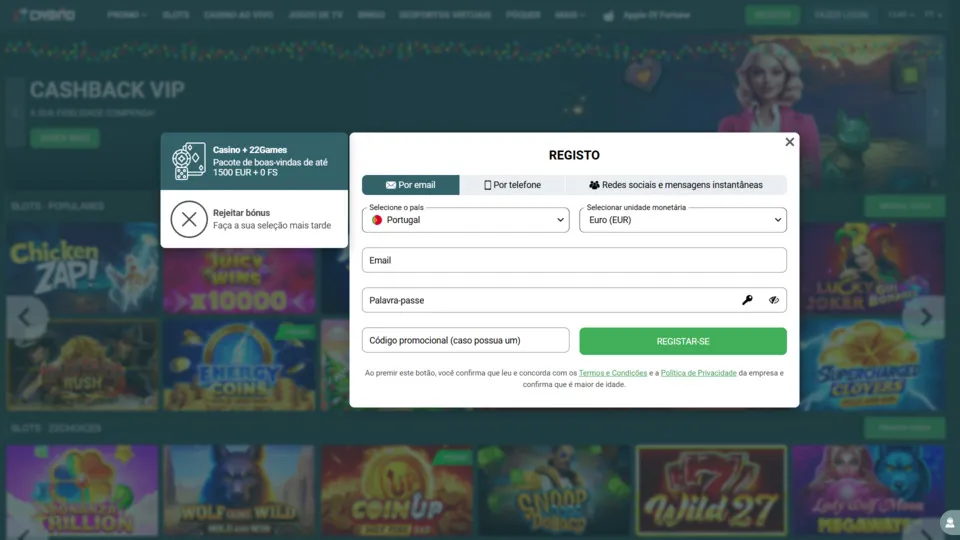 Em conformidade com normas internacionais (como o RGPD), o casino possui uma política rigorosa que detalha, aquando do registo no 22Casino Casino online, como as informações pessoais são recolhidas, armazenadas e protegidas, garantindo que os dados não sejam vendidos ou partilhados sem base legal.