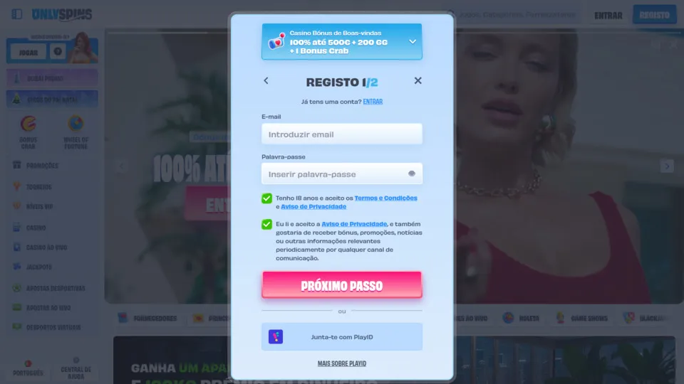 Para entrar na sua conta, clique no botão de início de sessão no topo da página e introduza o seu nome de utilizador ou e-mail. Após preencher a respetiva palavra-passe, confirme os dados para aceder instantaneamente ao seu perfil e jogos.
