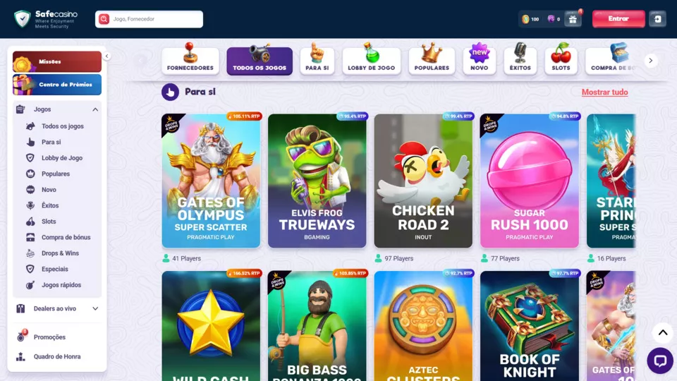 O casino Safecasino, lançado em fevereiro de 2025, apresenta um catálogo com mais de 10 mil títulos, provenientes de 105 fornecedores de software de jogos. Um número bastante expressivo, que dá conta do nível de entretenimento e diversão na plataforma.