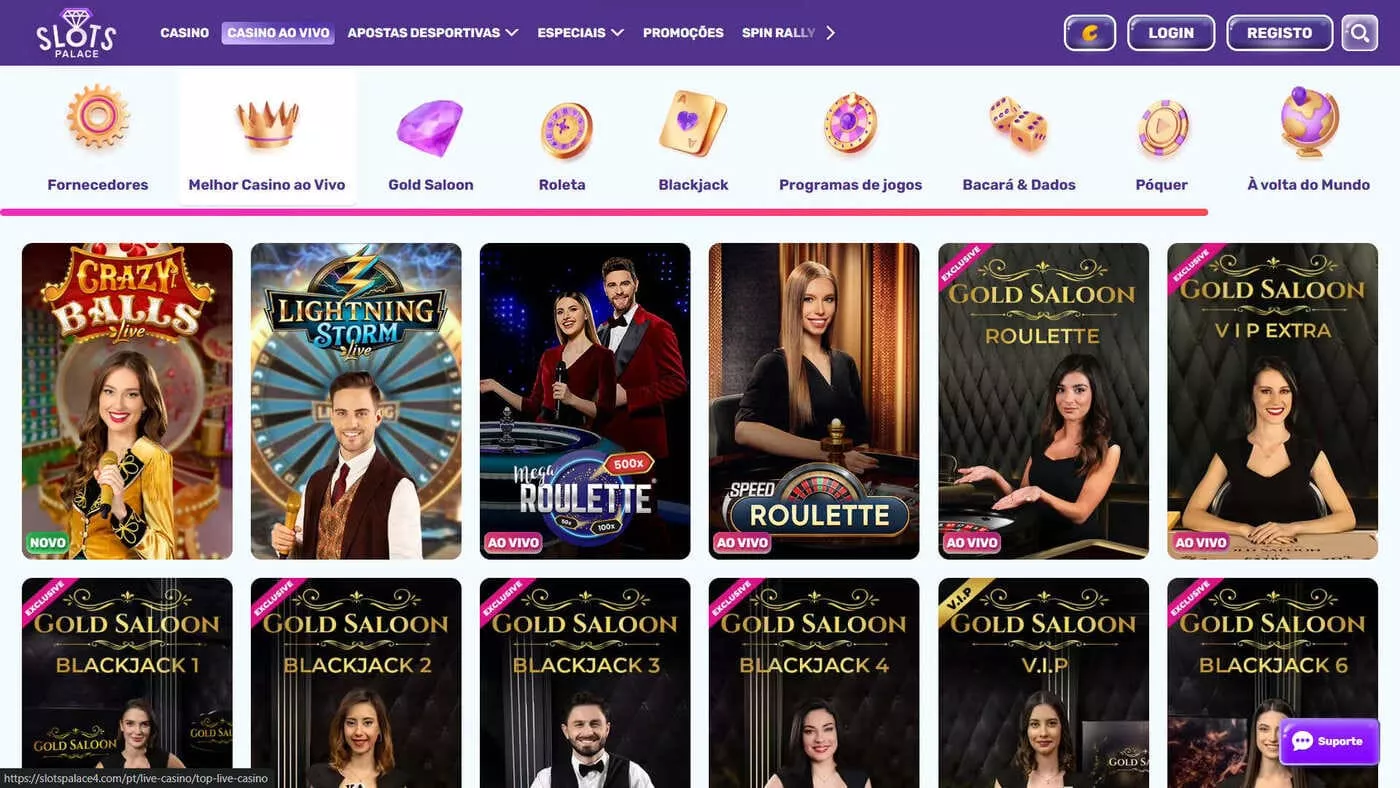 A secção de casino ao vivo do Slots Palace oferece uma experiência única, com interação com dealers ao vivo em tempo real e bónus exclusivos. Nesta categoria, os jogadores podem encontrar: