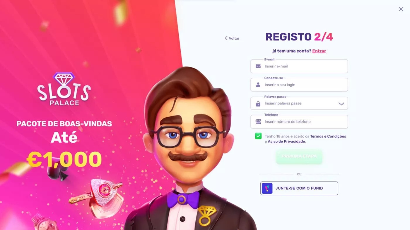 O Slots Palace Casino oferece uma experiência de jogo fácil e emocionante. Veja como criar uma conta seguindo os passos abaixo:
