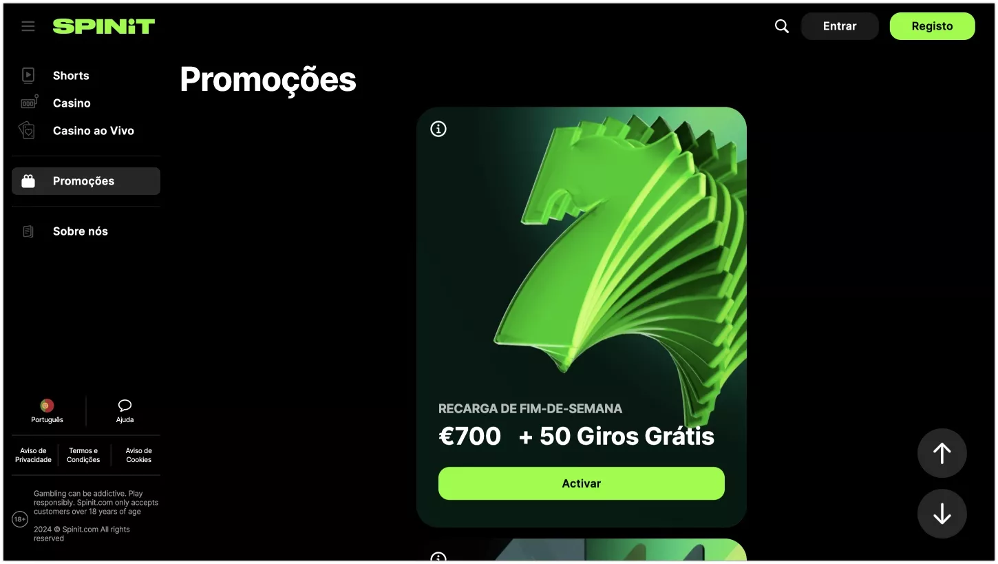No Spinit casino em Portugal tem acesso a todos os jogos de fortuna ou azar habitualmente no mercado. Slots, bacará, roleta, blackjack, raspadinhas, jogos crash, programas de TV e póquer são alguns dos jogos disponíveis.