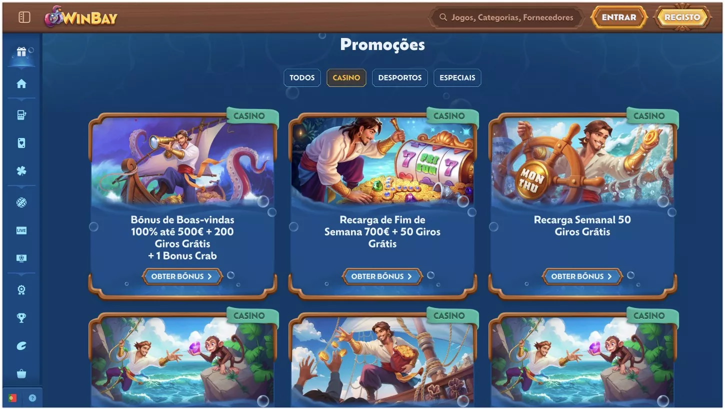 O Winbay casino apresenta um conjunto de promoções, onde se destacam: